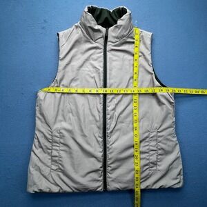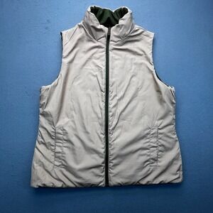Merona Reversible Puffer Vest Olive Green Beige Quilted Full Zip Women's L
