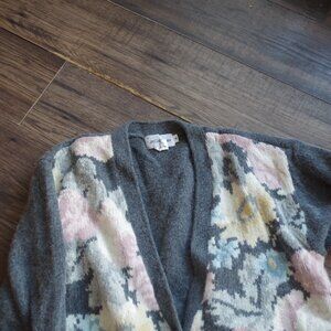 VintaSize medium.JH Collectables.ge floral wool,20% rabbit hair,70% lambswool,gray and white and pink.In good shape ,pit to pit is 23 inches across.By