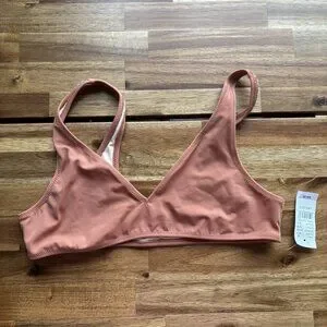 L.A. Hearts Pac Sun Swim Bikini Top Sz Large Dark Copper Pool Beach Neutrals NWT