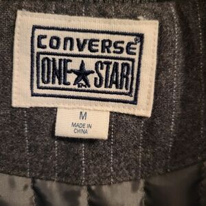 Converse One Star Gray White Pinstripe Wool Bomber Style Coat