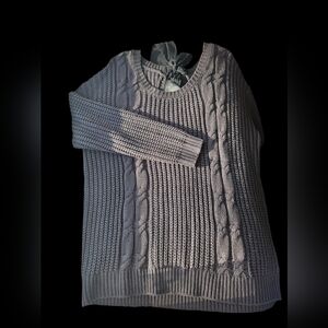 Charcoal cable knit sweater from Torrid. Has cute black satin tie back ribbon. Perfect for layering! Soft and comfortable fit. New without tag.