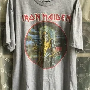 Embrace your rock spirit with this Iron Maiden gray graphic t-shirt. Perfect for fans, this shirt offers comfort and iconic style.