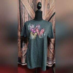 NWOT Women's Short Sleeve Faith Love Hope Heart/Animal Print Tee
