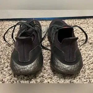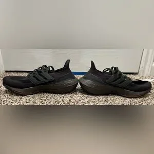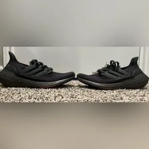 Sleek Adidas black running shoes.