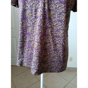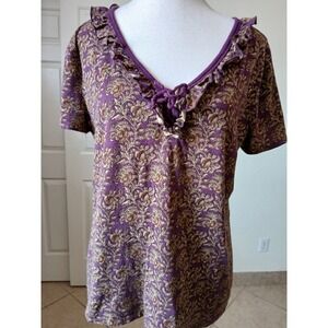 Ralph LAUREN JEANS CO Top Women L Purple Paisley Rufffle Tie Neck Short Sleeve
