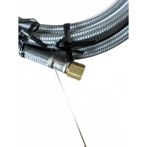 The hose features a braided 304 stainless steel exterior that resists corrosion and kinking.