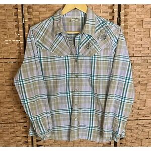 Cabela's Womens L Plaid Western Shirt Embroidered Floral Long Sleeve