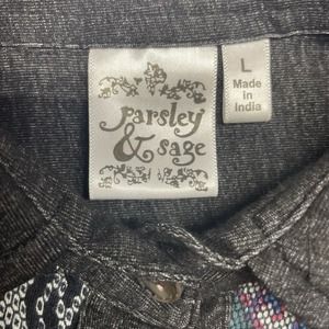 Woman's Parsley & Sage Large Button Down Colorful Rayon Light Weight Aztec Color