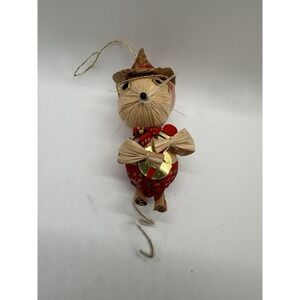 Vintage Corn Husk Mouse Ornament Christmas Folk Art Handmade Hanging Decor