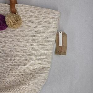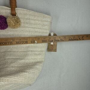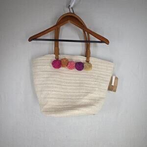 Vtg Red Camel Bag Tote Bags Purse Woven Straw Beach Pom Pom Lagenlook NWT Pool