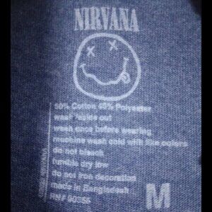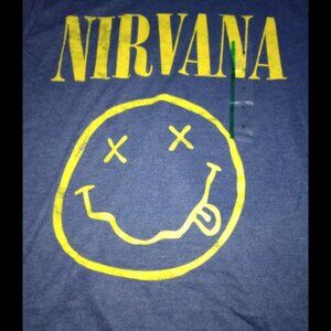 This Nirvana Graphic Short Sleeve T‑Shirt features the iconic yellow Smiley Face logo on a denim heather background. Made from a soft cotton‑blend fabric, it offers a comfortable, relaxed fit perfect for everyday wear, concerts, or music lovers. The classic cut and graphic make it suitable as a unisex style for anyone who loves Nirvana. Size L — brand new with tags.