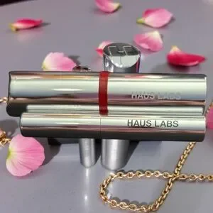 Experience bold style with Haus Labs By Lady Gaga. This blush balm/black Mascara bundle features a sleek silver design with a striking red accent. Perfect for any makeup collection.