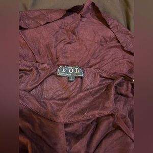 POL Burgundy Ruffle Jumpsuit Feather Tassel Boho Wine S NWOT
