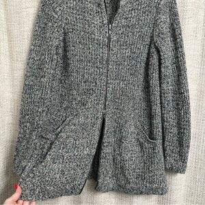 J.Jill Long Sweater Cardigan Black Grey White Speckled Zip Up Sweater Size Small