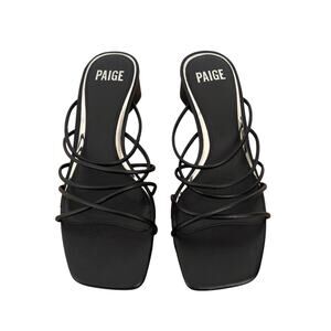 Brand new without box Paige gemma strappy heels. Open square toe. Slip-on with lightly padded insoles. 1.75" block heel. Silver trim. Retail: $180