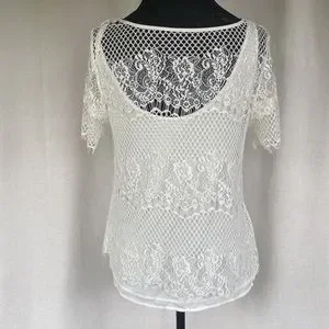 WHBM Lace Overlay Tee