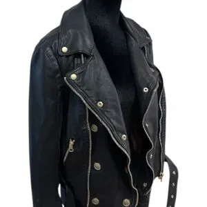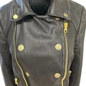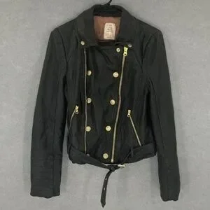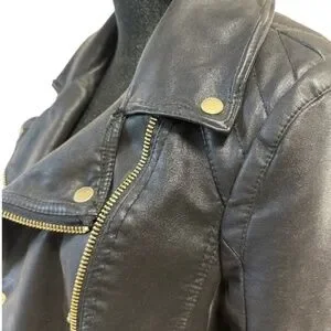 Black Faux Vegan Leather Motorcycle Jacket in Size Small.