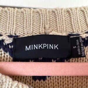 MINKPINK Fringe Chevron Knit Sweater Beige Navy Pullover Women’s Size Small