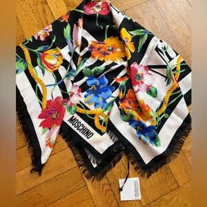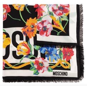 Moschino Floral Printed Fringed-Edge Scarf
