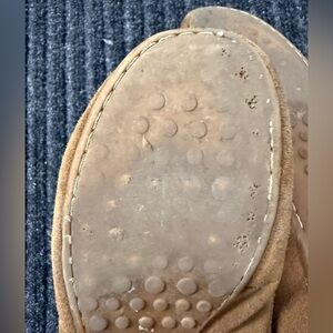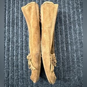 Minnetonka Women's Kilty hardsole moccasins in brown suede leather