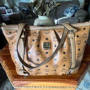 MCM Visetos 2way Leather Tote Signature Visetos Print Zip Closure with crossbody strap