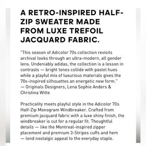 NWT Adidas originals windbreaker 70s half zip Jacket