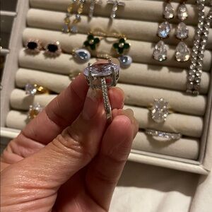 This stunning ring features a captivating light purple gemstone set in a sleek silver band. Perfect for adding a touch of elegance to any outfit.