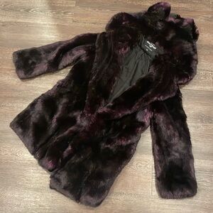 Luxurious faux fur jacket with hood. Features a rich purple color. Perfect for stylish warmth. Excellent condition, i wore this item once! Very warm and cozy