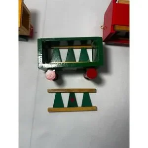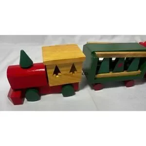 🚂VTG 94' WOODEN CHRISTMAS TRAIN SET COMPLETE 25 PCS HAND CRAFTED & HAND PAINTED
