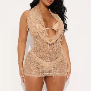 Drinks On Me Sequin 3 Piece Bikini & Dress Set - Mocha