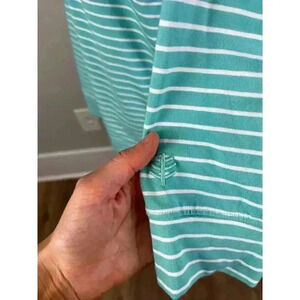 Coolibar Key Colony Beach Hoodie Blue Striped Tassel UPF 50 Stretch Half Sleeve. **No flaws noted; refer to all photos for condition and sizing. Item appears to be oversized as measurements are consistent with a size M-L.