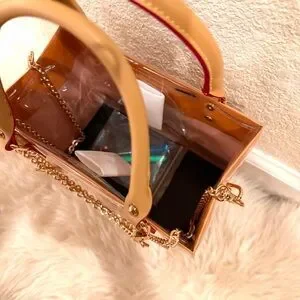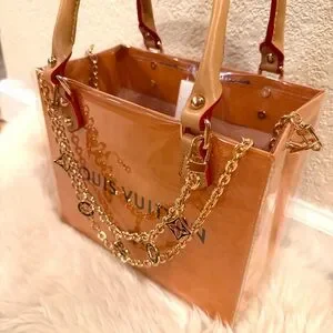 100% authentic LV shopping bag by adding unbranded and customized PVC cover, handles, bag twilly scarf and crossbody chain. Added 4 stub feet at the bottom to provide extra protection on the bag.