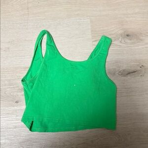 Bold green crop top with a sleeveless design. Ideal for casual wear.