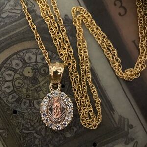 NEW 10kt solid gold Virgin Mary lady Guadalupe oval pendant necklace