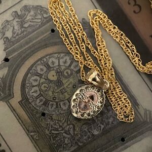 Pendant is 10k solid gold. Chain is 14k gold filled.