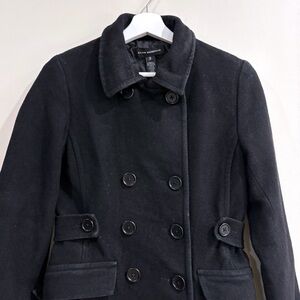 Club Monaco Women Peacoat XS Black Wool Blend Double Breasted Minimalist Chic