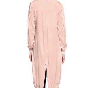 This soia and kyo bomber-style jacket features knit sleeves and collar, and is 100% modal. It is sold out everywhere. Can wear this bomber-style long — zipped or open —