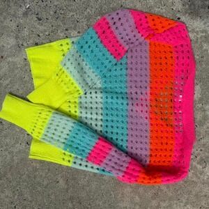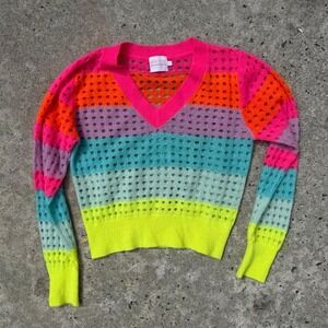 Brodie Cashmere 100% Rare Unique Vintage Small Knit Sweater Rainbow Colorful