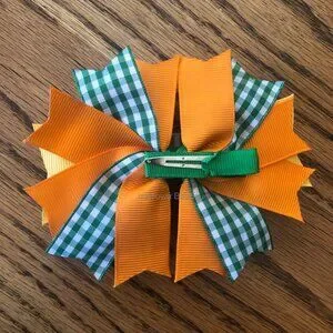izaBowa Boutique, hairbow, Boutique Bow, Alligator Clip, ribbon, grosgrain, bow, handmade, Alligator Clip with Teeth, 5 1/2" bow, deluxe bow, orange, yellow, green, brown, leaf, fall, polka dot, gingham, plaid