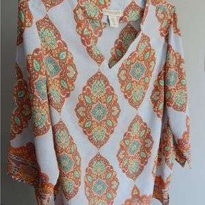 Cynthia Rowley Women's Orange and Blue Patterned Top