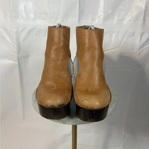 Step out in style with these chic tan leather platform ankle boots. Perfect for any occasion, these boots offer both comfort and elegance.