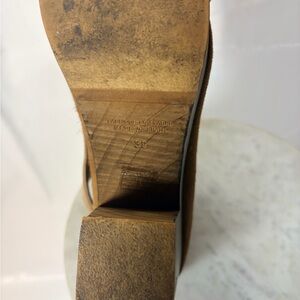 Free People Horizon Suede & Leather Block Heel Clog Bootie in Camel Size 39