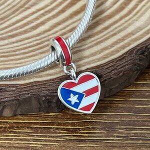 Pandora Puerto Rico Flag Heart Dangle Charm S925 Silver Jewelry- Gifts
