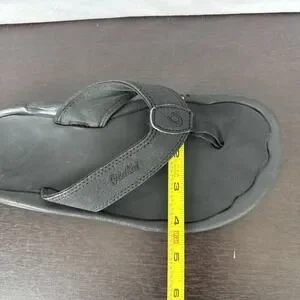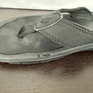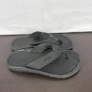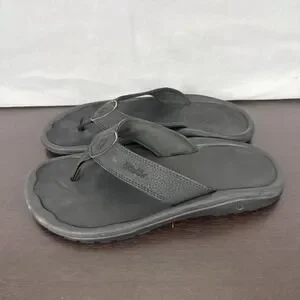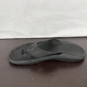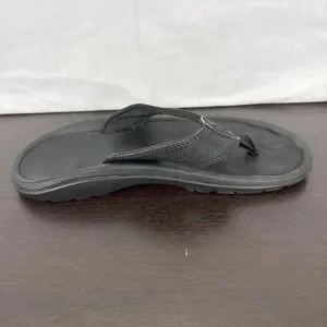 Olukai Ohana Sandals Women's Size 8/8.5? Black Leather Rubber Flip Flops Summer