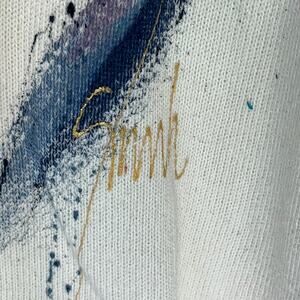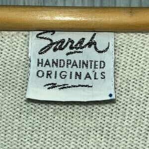 Sarah Hand Painted Originals Vintage Off White Wearable Art Sweater L/XL