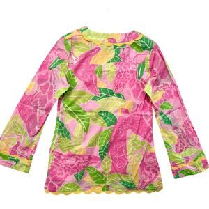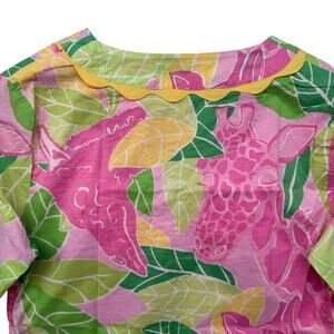 VTG 90s Lilly Pulitzer Womens M Tunic Top Pink Giraffe Ric Rac Trim Tropical