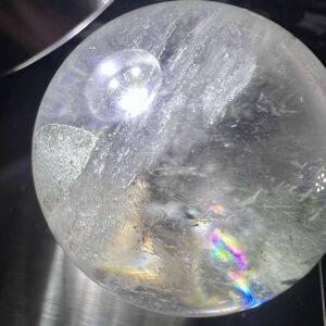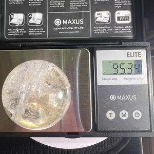 The clear garden quartz crystal marble is a pristine orb infused with minimal greenery and sand inclusions resembling a miniature garden in sand encapsulated within its translucent depths. Its clarity radiates tranquility while the embedded flora evoke a sense of natural harmony. This crystal is believed to foster growth, renewal, and connection to nature, offering clarity of mind and spiritual rejuvenation to its beholder.