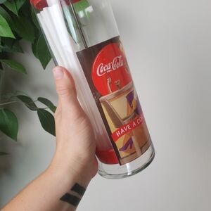 Vintage Coca Cola Glass Straw Holder Dispenser Red White Clear