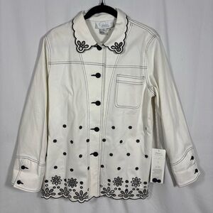 Diane's Essentials Womens Blazer Size M White Button-Up Eyelet Embroidered NWT