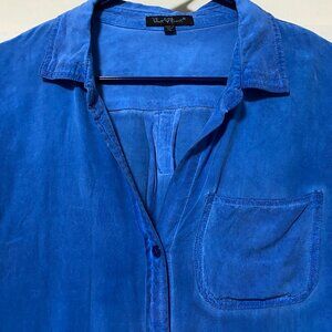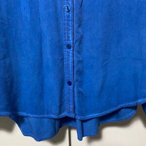 Velvet Heart, long sleeve, neon powder blue, button-down blouse, size XL
